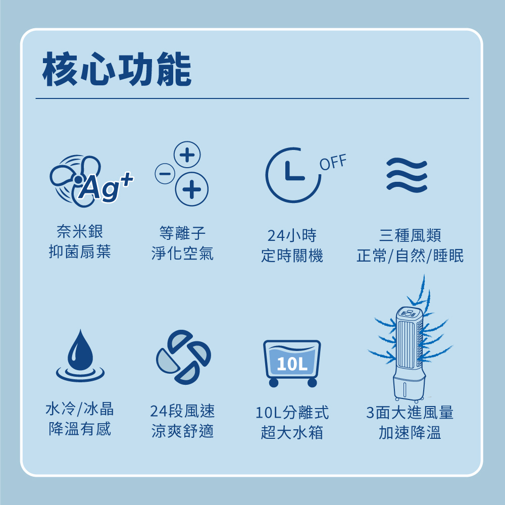 ‧透過Ag+奈米銀離子扇葉將涼風送出,有效抑制家中常見病菌(金黃色葡萄球菌、大腸桿菌等)