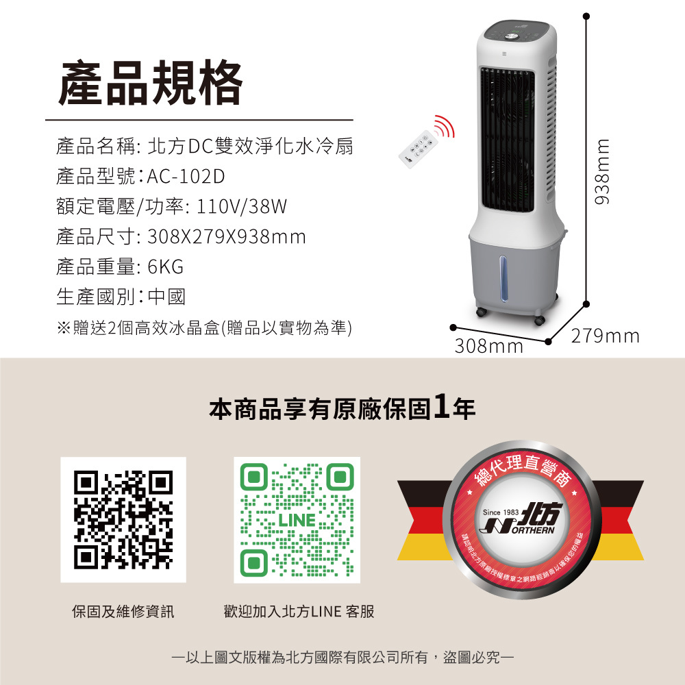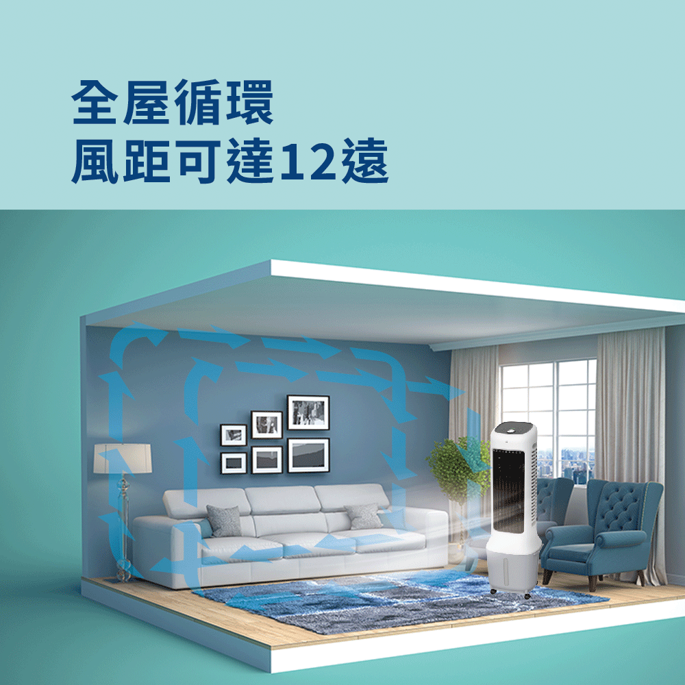 ‧雙風扇DC馬達,3面進風,有效風距可達12米遠