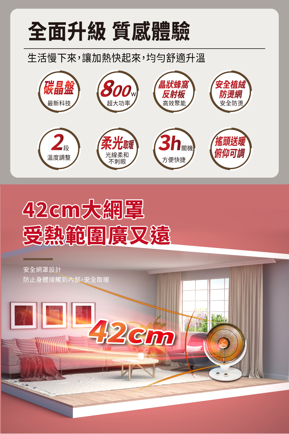 .最新科技遠紅外線碳晶盤,3秒速熱.瞬間升溫.深入皮膚內層,不會有曬傷的疑慮.晶狀鑽石反射板 集中高效聚能.植絨安全防燙網罩.V0防火阻燃材質