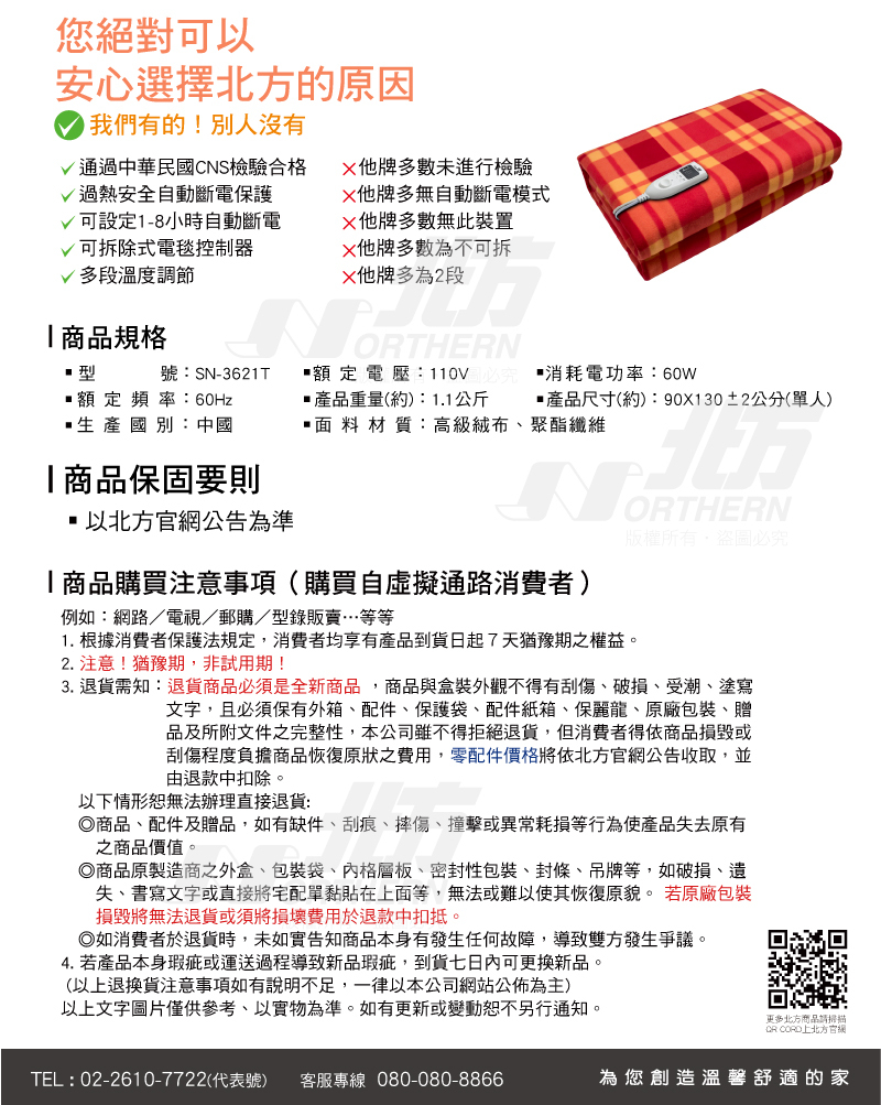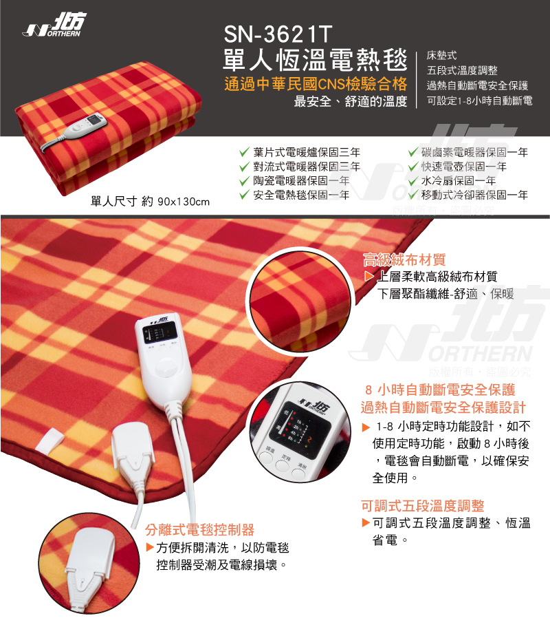●尺寸:130*90cm ●CNS檢驗合格 ●高級絨布 最安全、舒適 ●可設定1-8小時自動斷電 ●恆溫省電 ●過熱安全自動斷電保護 ●五段式溫度調整