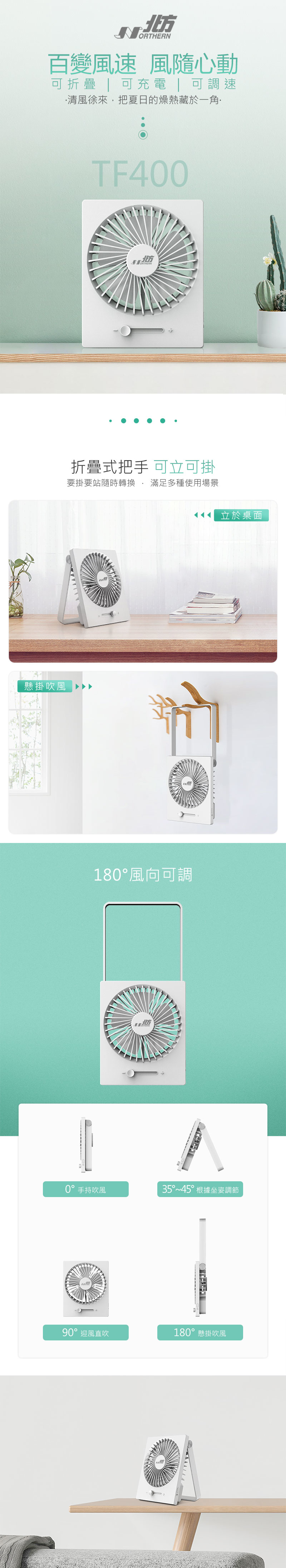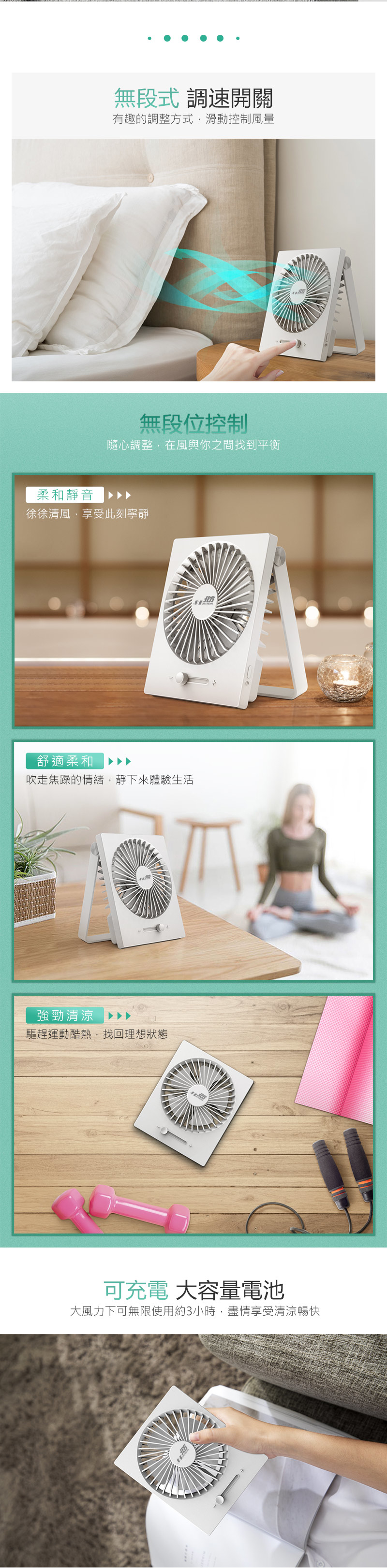 ●4吋 / 5片風葉設計,風量強勁●可立式/壁掛2用。●可隨意調整上下風向角度( 0-180度)●無段式風量●低噪音,耗電功率低●電池容量約2000mAh